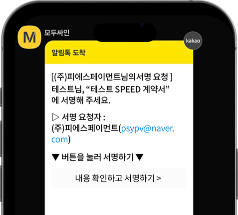 가입 신청인 카카오톡으로모두싸인 전자서명 계약서 발송